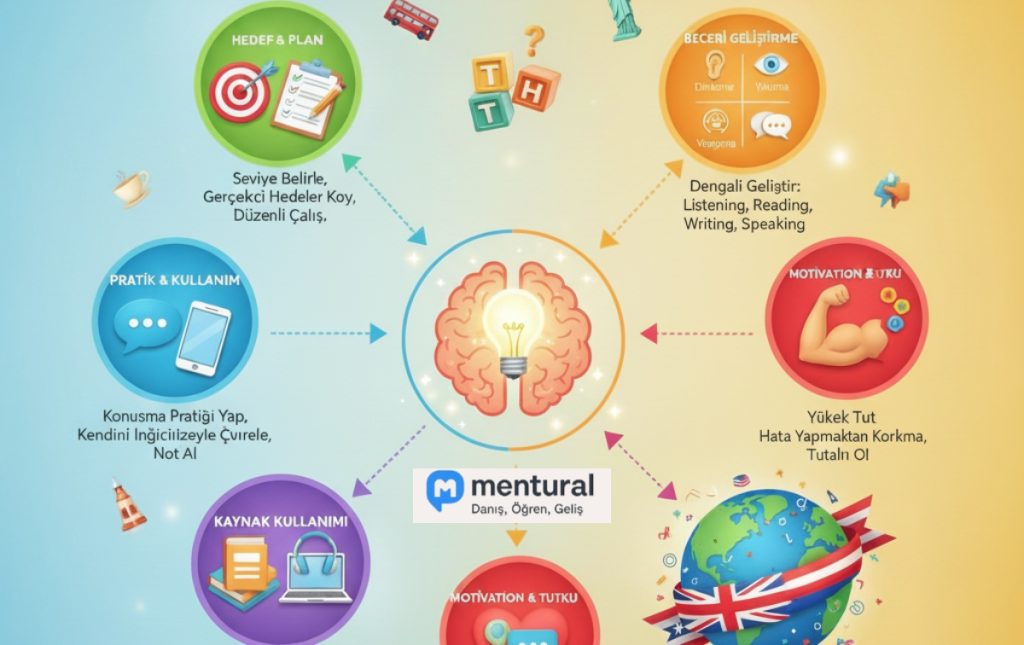 Mentural.com üzerinden İngilizce öğretmenleri ile 1:1 görüşerek çok daha hızlı ve mantıklı bir şekilde İngilizce öğrenme adımlarını doğru metotlarla kısa sürede öğrenebilirsiniz.